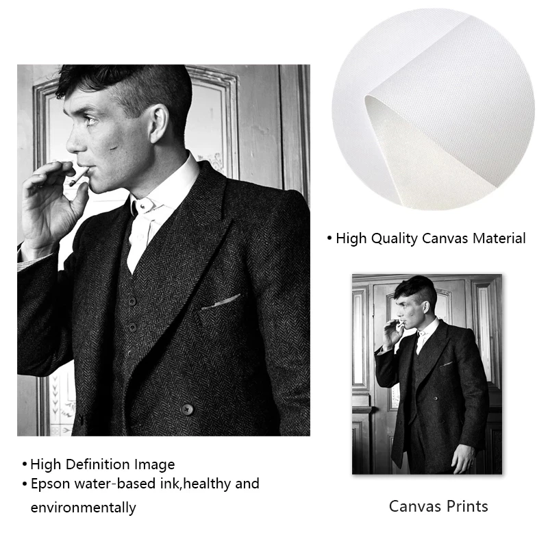 Картина на холсте с изображением Томми Шелби, черно-белая современная картина на стену, декор для спальни
