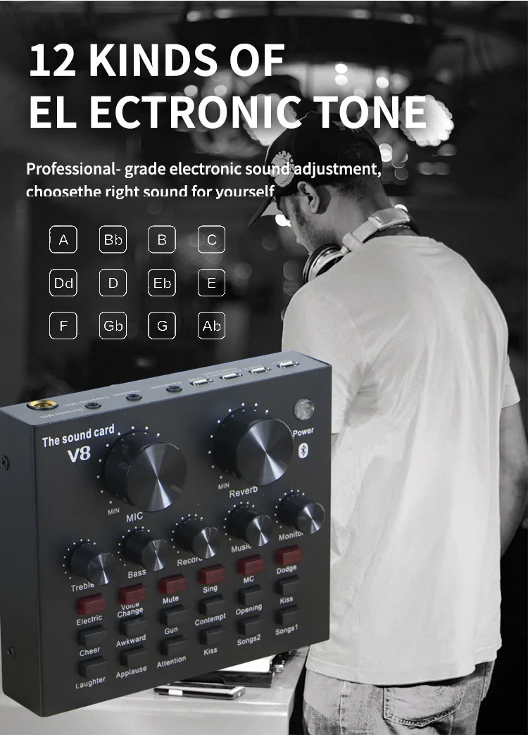 V8 внешняя звуковая карта USB, гарнитура, микрофон, веб-трансляция, персональные развлечения, стример, прямая трансляция для ПК, телефона, компьютера
