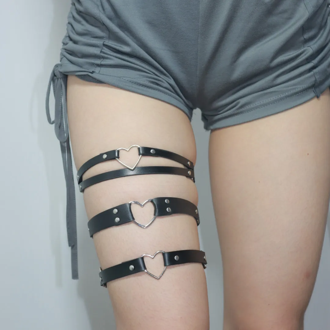 Для женщин повязка для ног в стиле панк с бантом в виде сердца сексуальный кожаный ремень для подвязки Harajuku эластичный ремень для тела плотные ремни на подтяжках