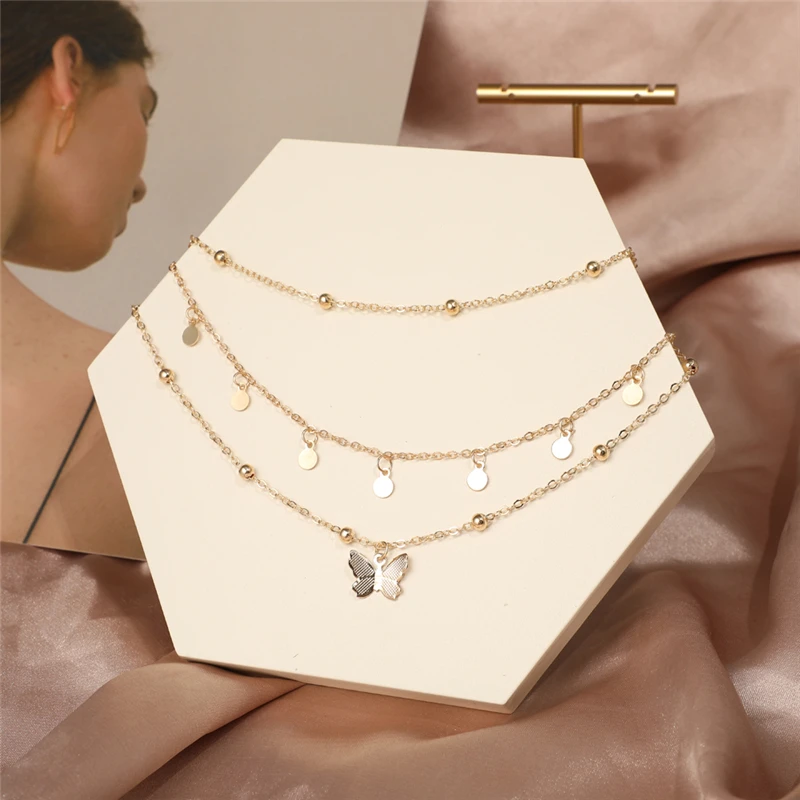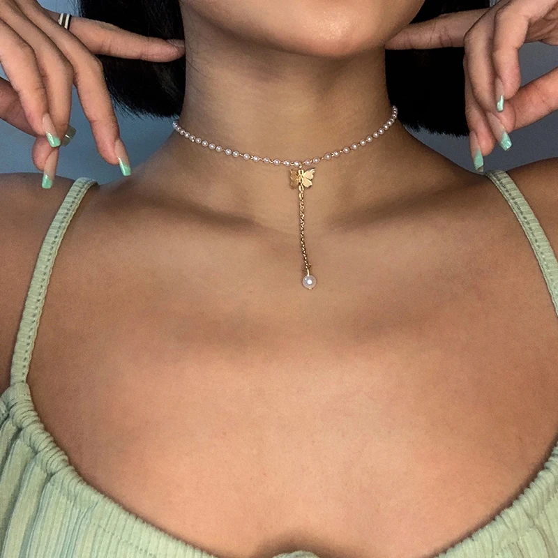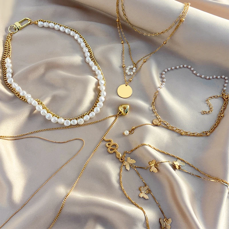 Ожерелье Модного Многослойного Сердца Змеи Подвеска для женщин золота бабочки ожерелья цепи перлов Choker подарков ювелирных изделий