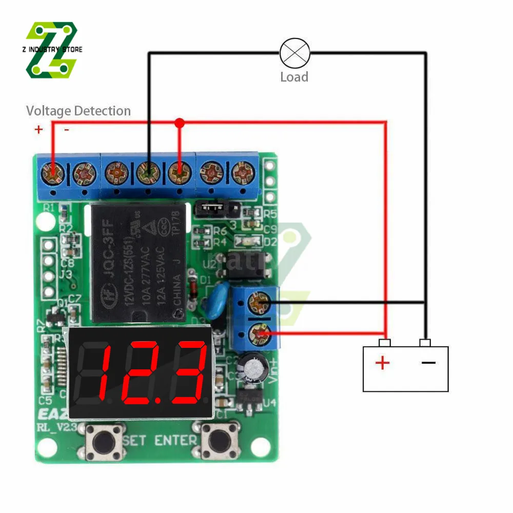 DC 12V контроль релейного переключателя Модуль платы реле Обнаружение напряжения зарядка монитор выгрузки тест задержка переключатель модуль