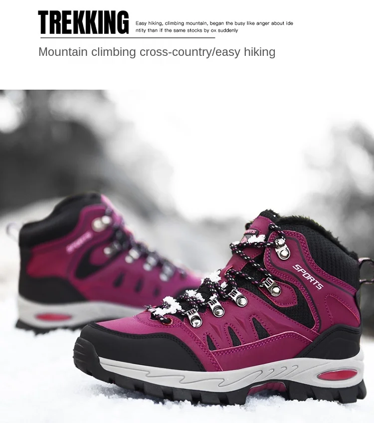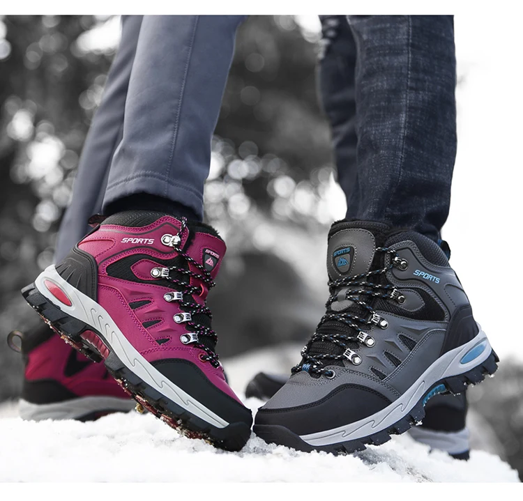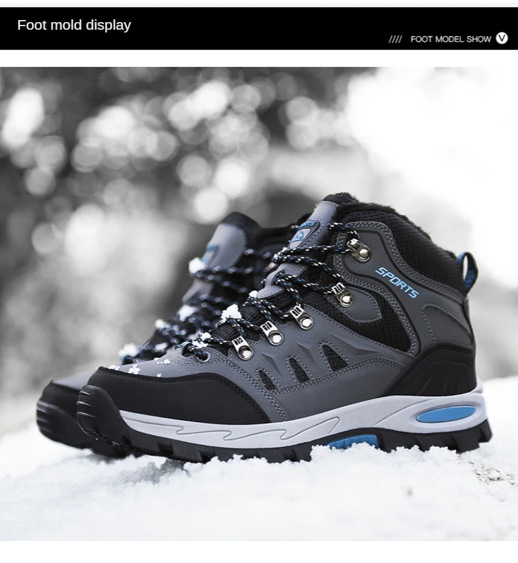 Зимние высокие мужские треккинговые ботинки, водонепроницаемые мужские уличные альпинистские ботинки, рабочая обувь, меховые плюшевые мужские походные ботинки, большие размеры 36-46