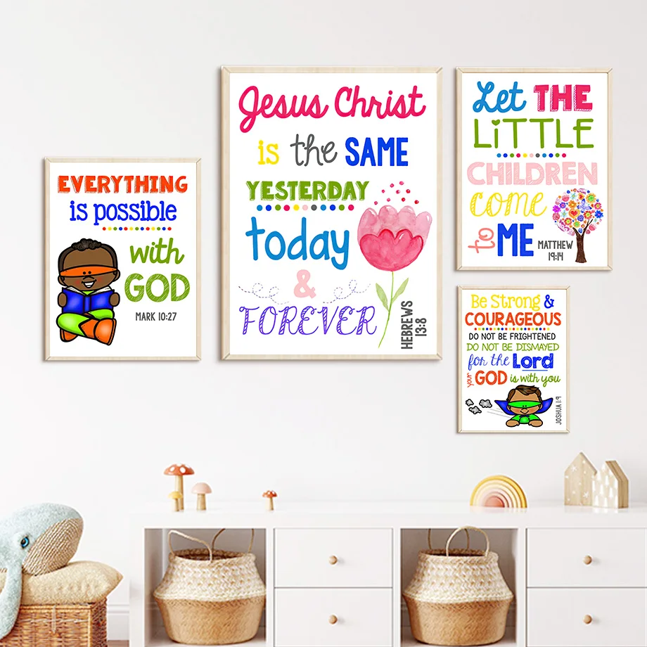 Детские версии из Библии, христианская церковь, настенное искусство, Картина на холсте, скандинавские постеры и принты, настенные картины, декор детской комнаты