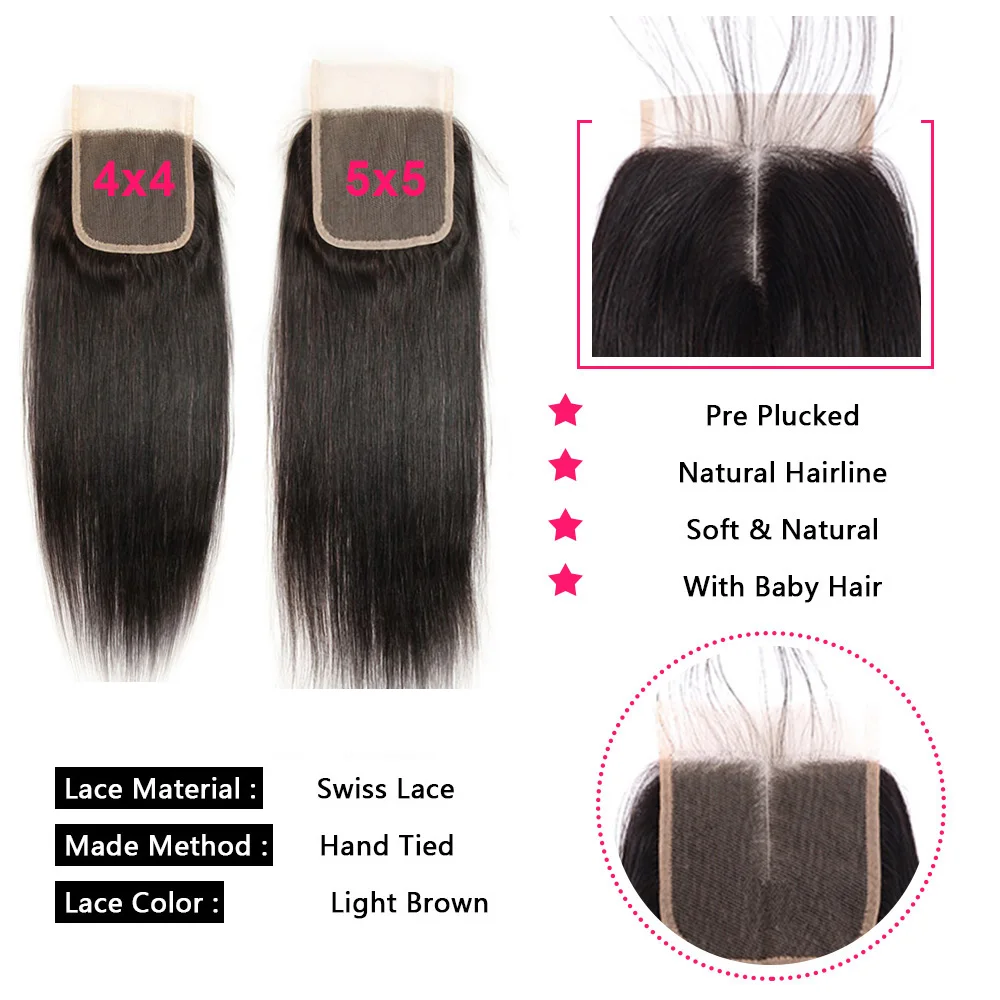 Кружевная застежка 5x5, прямая, бесплатная часть, 8-22 дюйма, Прозрачная Кружевная застежка, предварительно выщипанная с детскими волосами, кружевная застежка из натуральных волос Реми