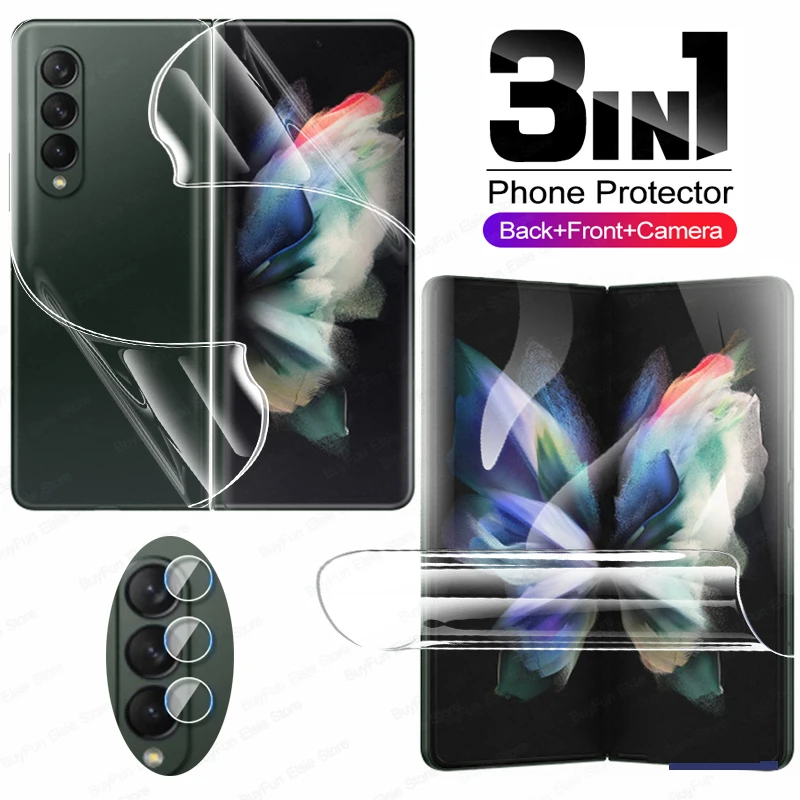 Гидрогелевая пленка 3 в 1 для Samsung Z Fold3, защитная пленка для экрана, пленка для объектива камеры для Galaxy Z, складная Защитная пленка для телефона 3 в 1, не стекло