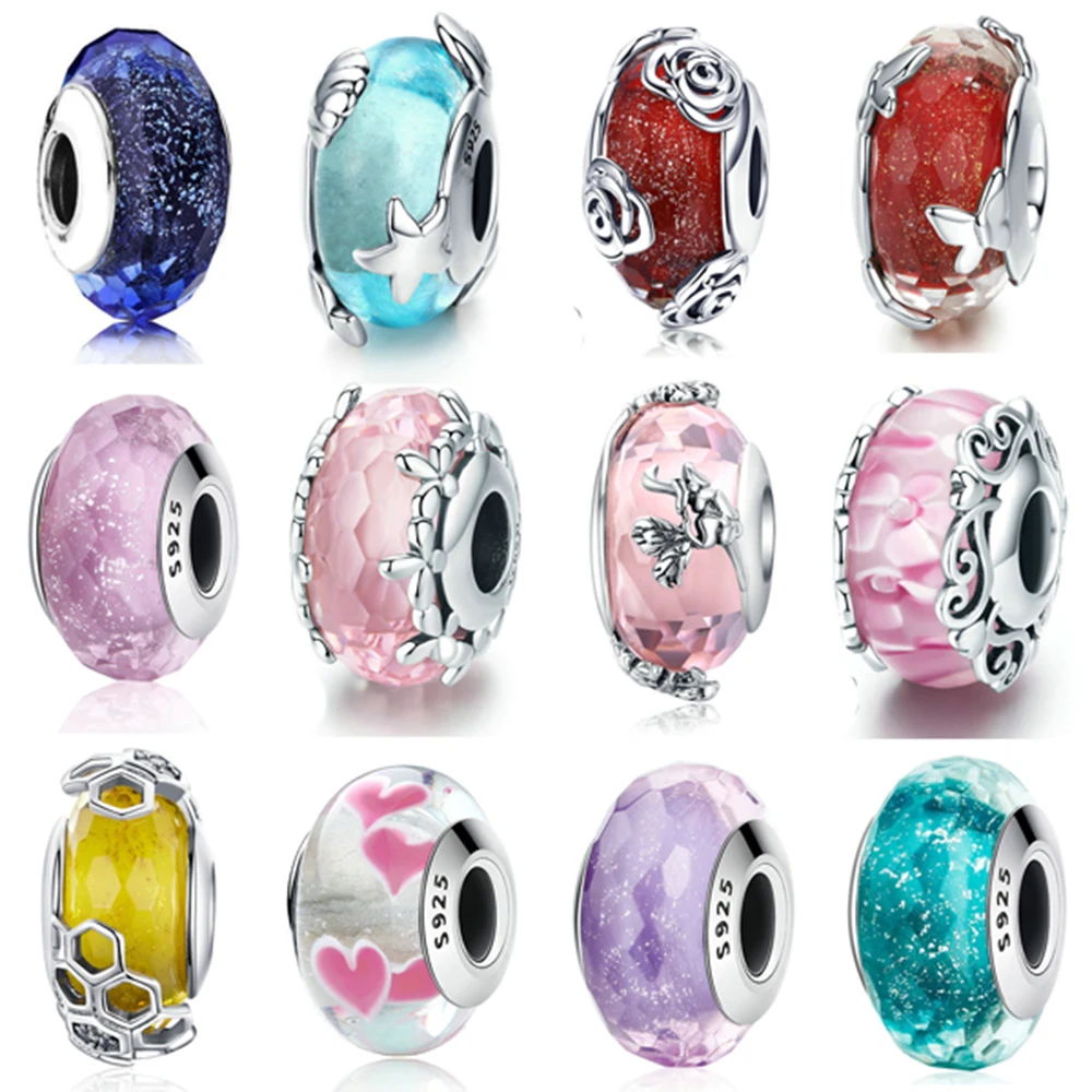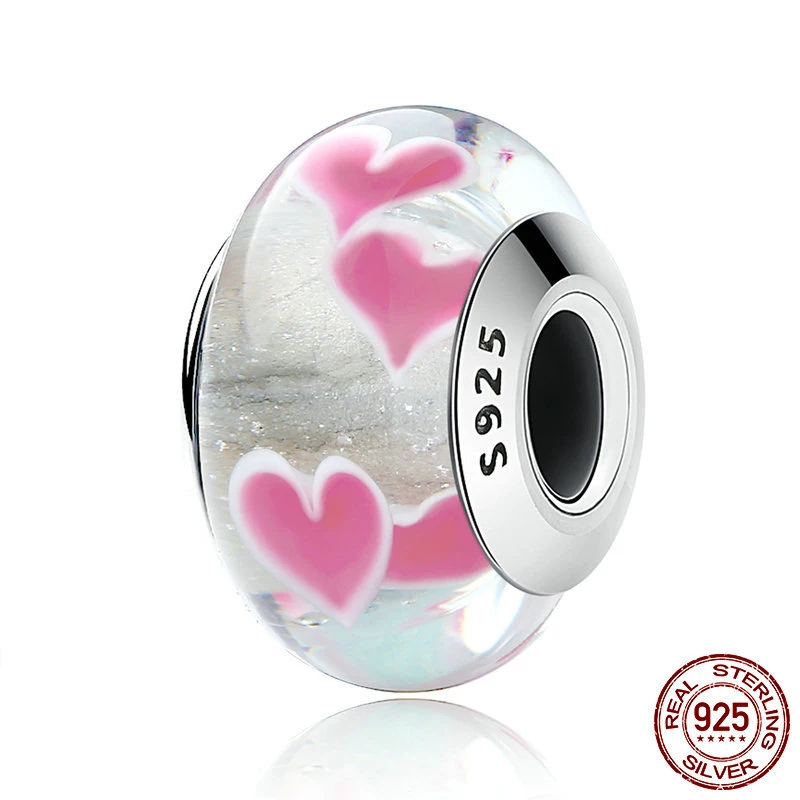 12 видов стилей, новинка, 925 пробы, Серебряное сердце в форме сердца, из муранского стекла с изображением цветка, бусины, подходят к оригинальному браслету Pandora, ювелирное изделие Diy, аксессуары