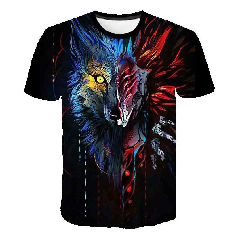 Новинка, крутые Забавные футболки с 3D-принтом волка, летние топы с...