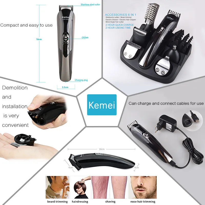 Машинка для стрижки волос Kemei, 6 в 1, Электрический титановый три...