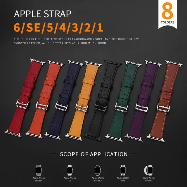 Кожаный Смарт-браслет для apple watch 44 мм 38 мм, простой модный ремешок для Iwatch 6543 se