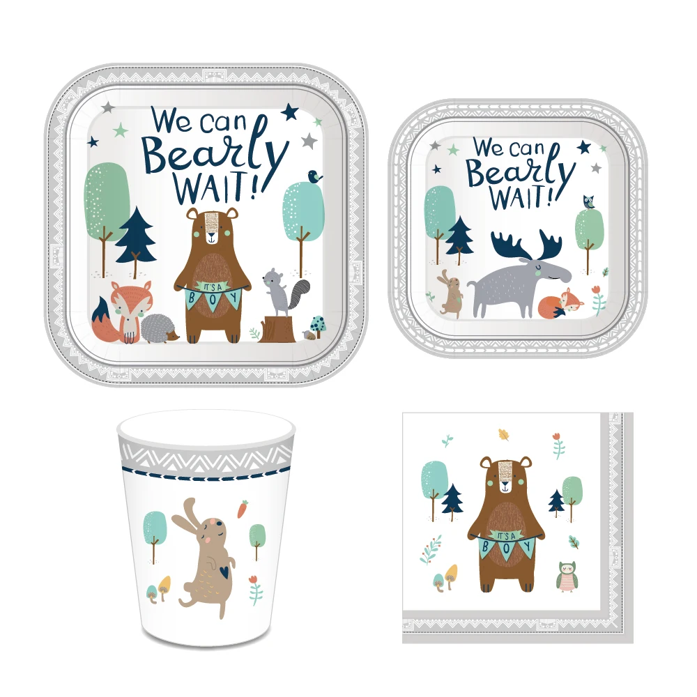 Набор одноразовой посуды с изображением животных из индийских джунглей на день рождения