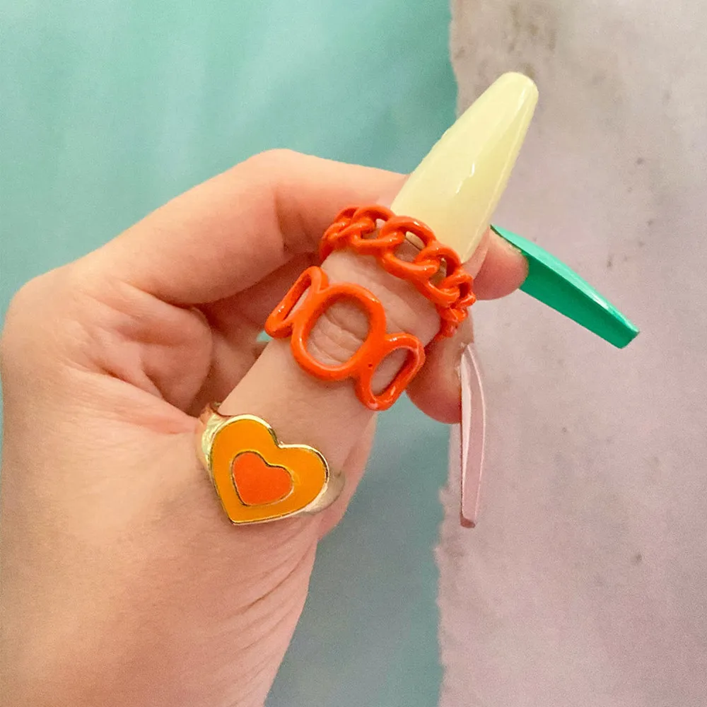 KISS WIFE корейский набор колец с сердечками в стиле панк для влюбленных, красочная акриловая цепочка из смолы, кольца для пар, подарки для путешествий, модные украшения кольца кольцо женское кольцо кольца 2021 тренд