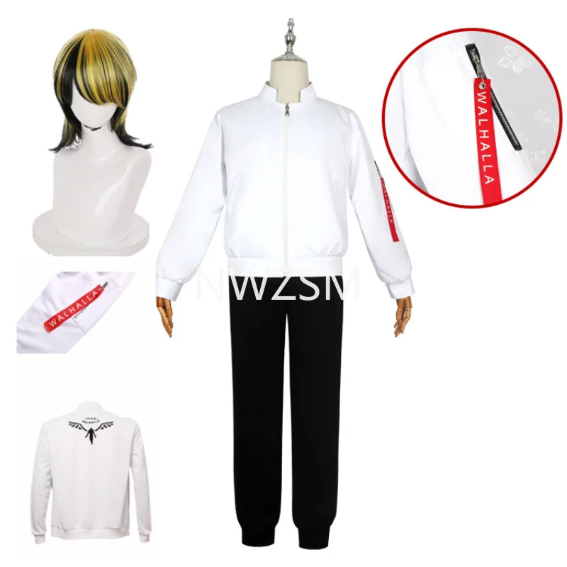 Костюмы и парики для косплея аниме Токио Мстители ханемия казутора, белое пальто, бейсбольная форма валхаллы, наклейки с бесплатными татуировками