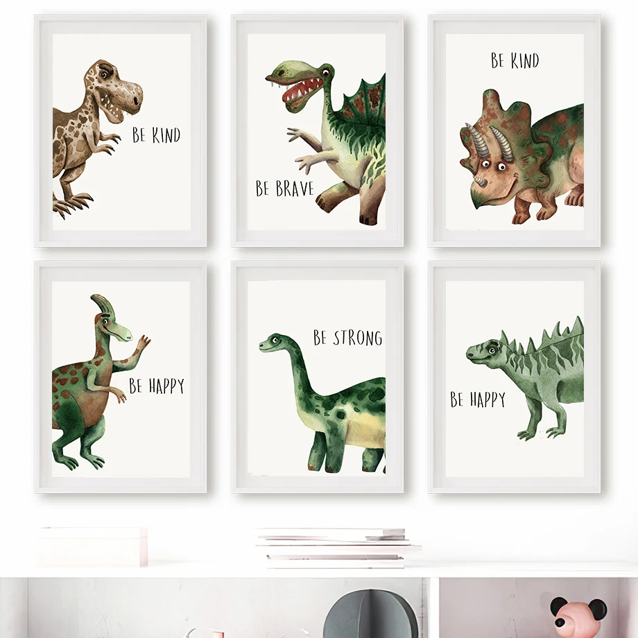 Акварель мультфильм Динозавр облако питомник стены искусства холст ...