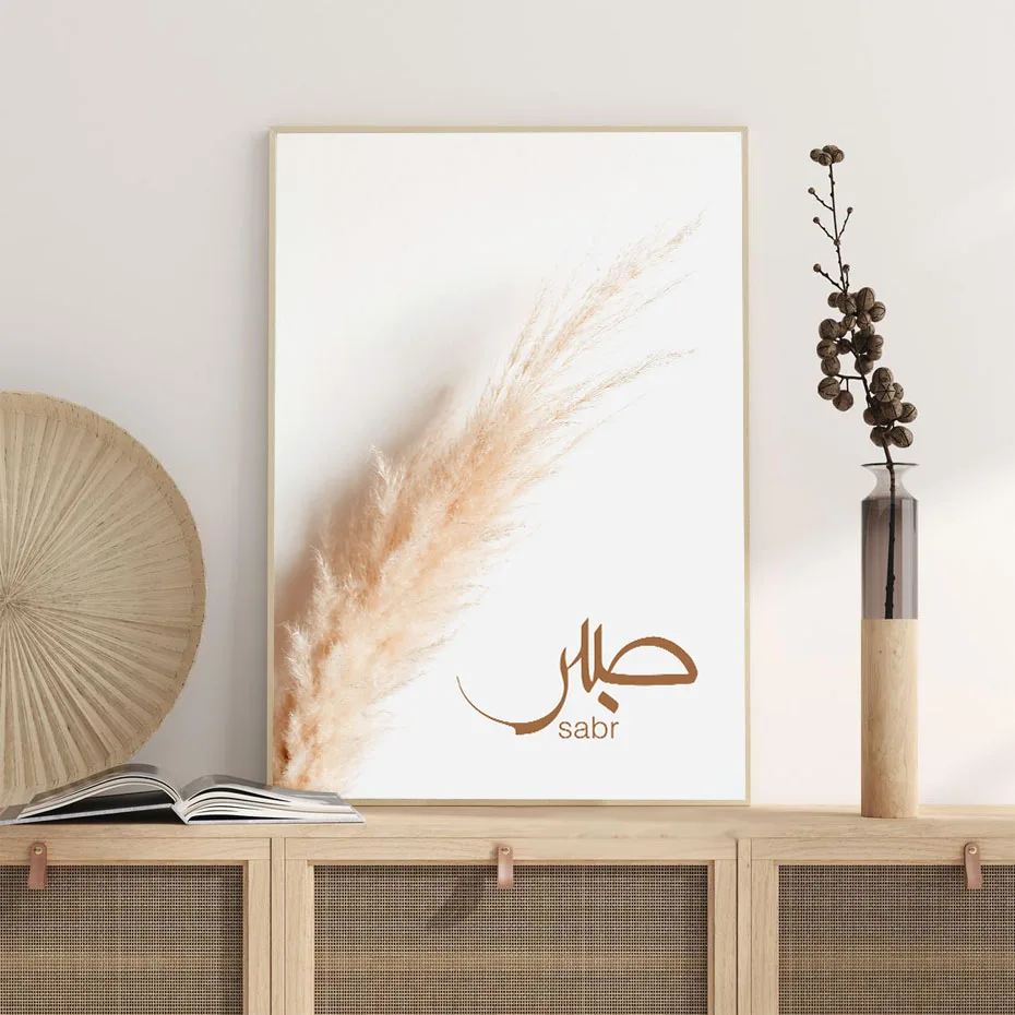 Богемная пампасная трава Исламская стена искусство холст любовь Салам сабр каллиграфия плакаты и принты плакаты, постеры спальня домашний декор