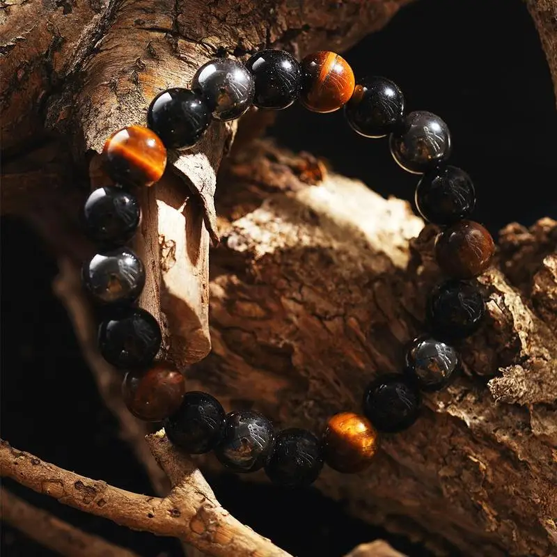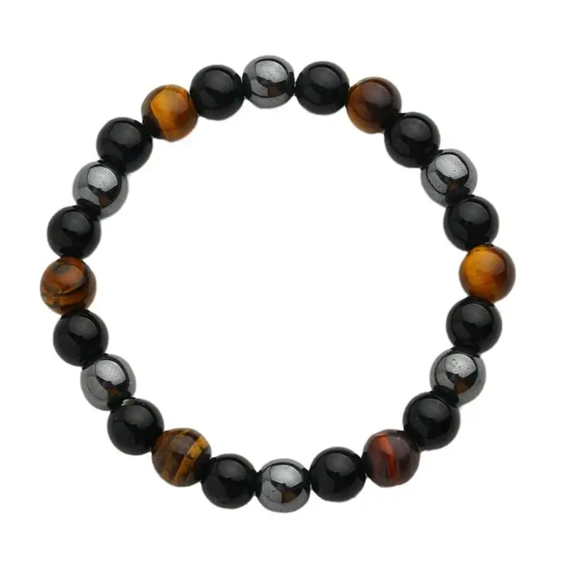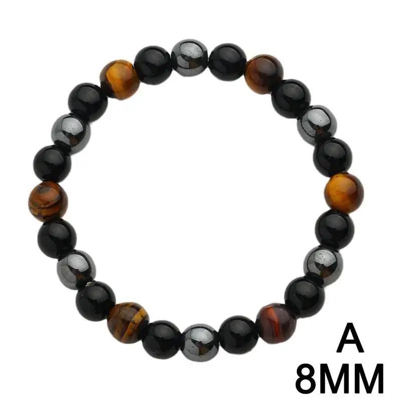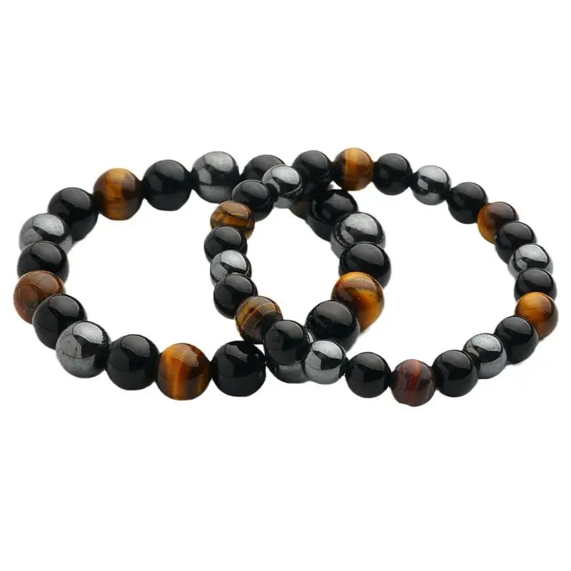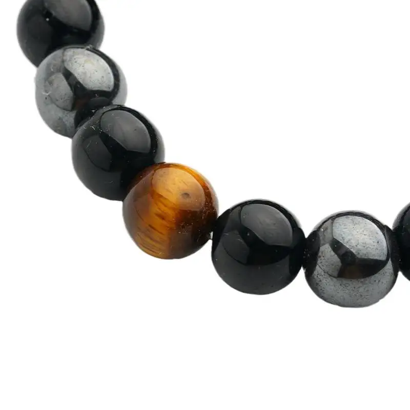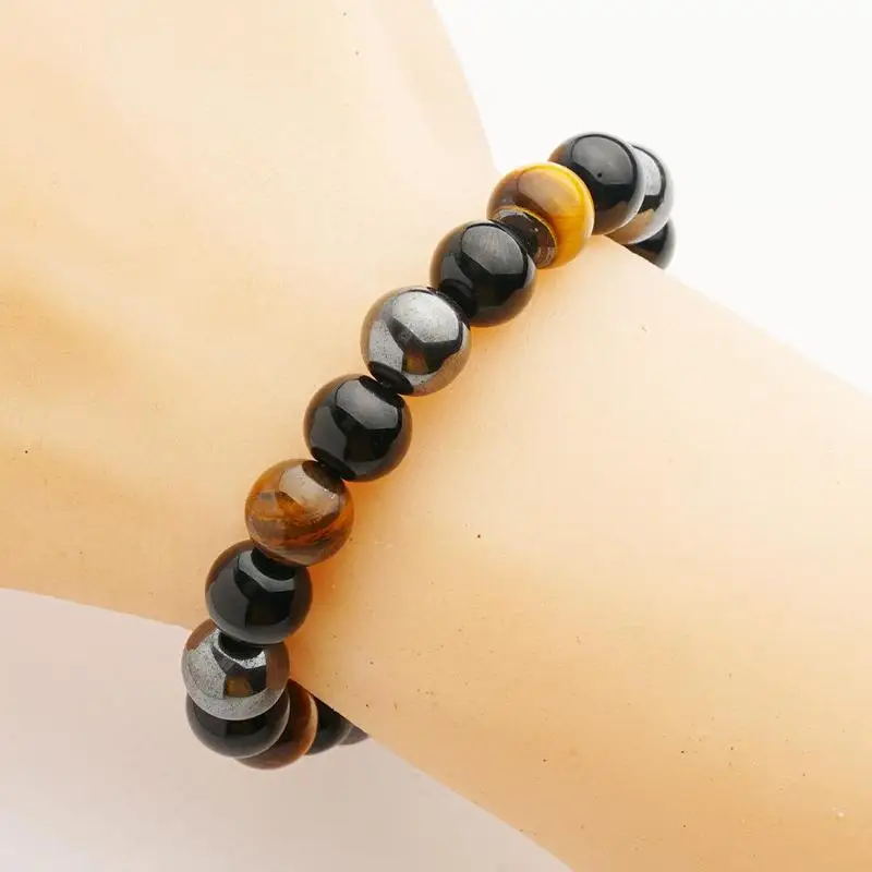 Модный браслет из натурального камня тигровый глаз тройная защита Гематит И Черный обсидиановый браслет