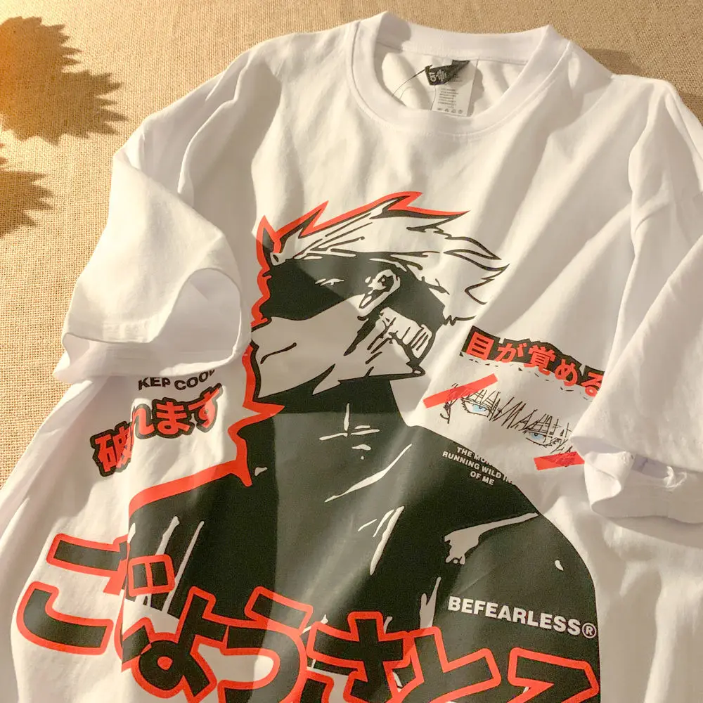 Мужская футболка в стиле Харадзюку, футболка унисекс с коротким рукавом и принтом ююютсу кайсена, крутая Повседневная футболка с мультяшным аниме, мужские топы в уличном стиле