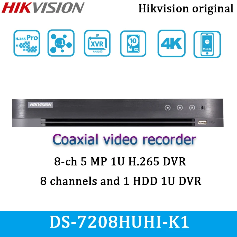 Hikvision 8CH 4K XVR DVR DS-7208HUHI-K1 5MP 1U 1 HDD H.265 pro + до 16 сетевых камер, можно подключить ONVIF английская версия