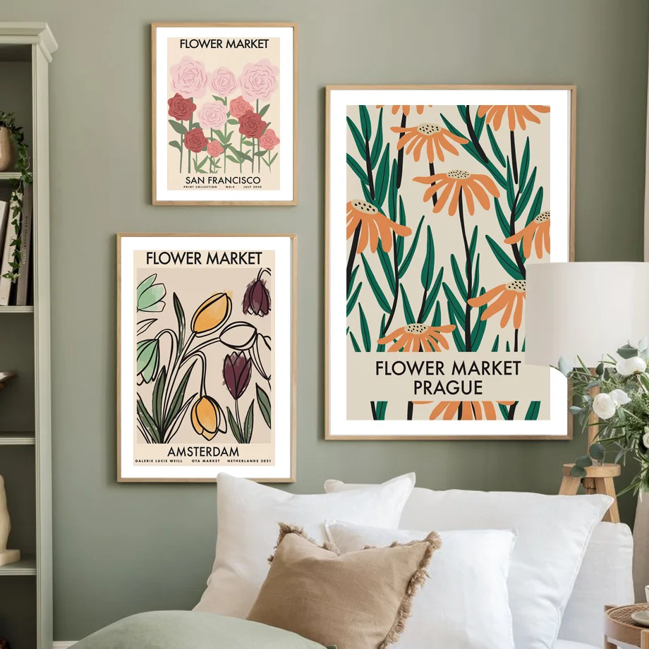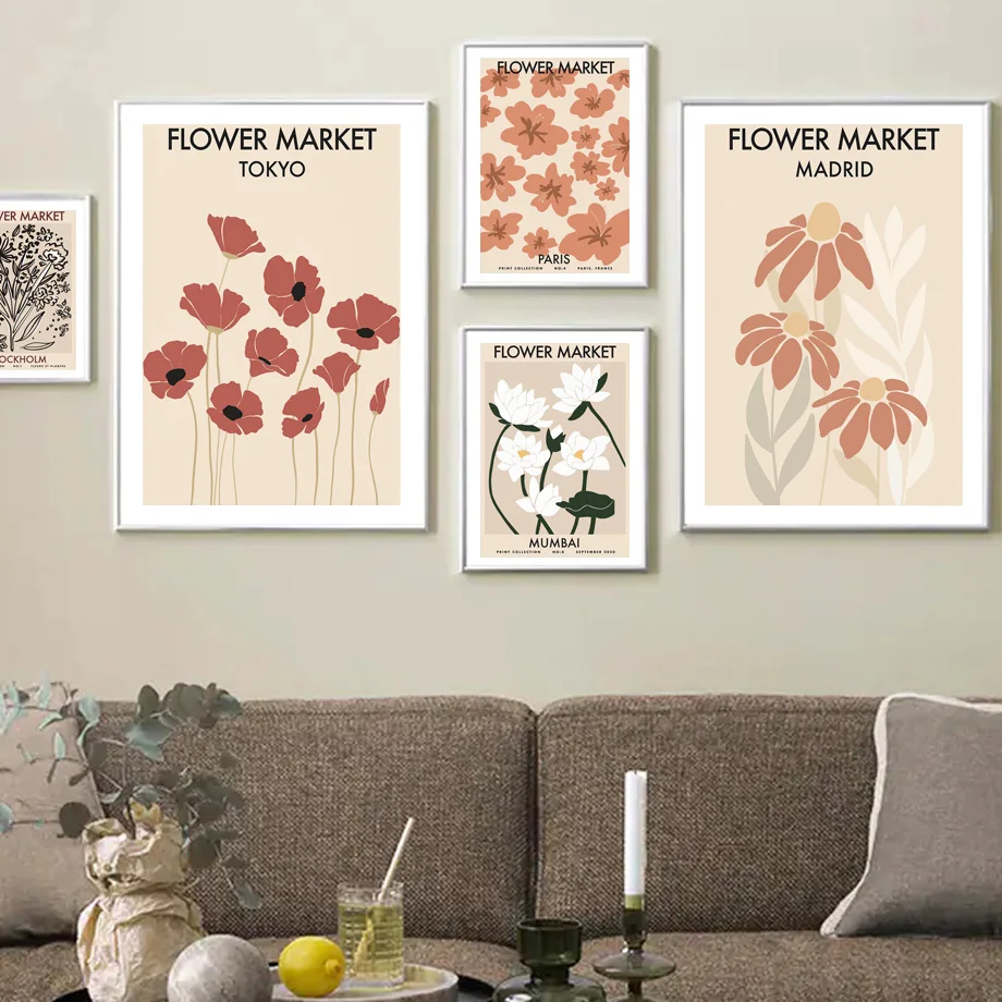 Абстрактный Цветочный рынок, Картина на холсте с принтом, скандинавский винтажный ботанический плакат, галерея, Настенная картина для декора гостиной