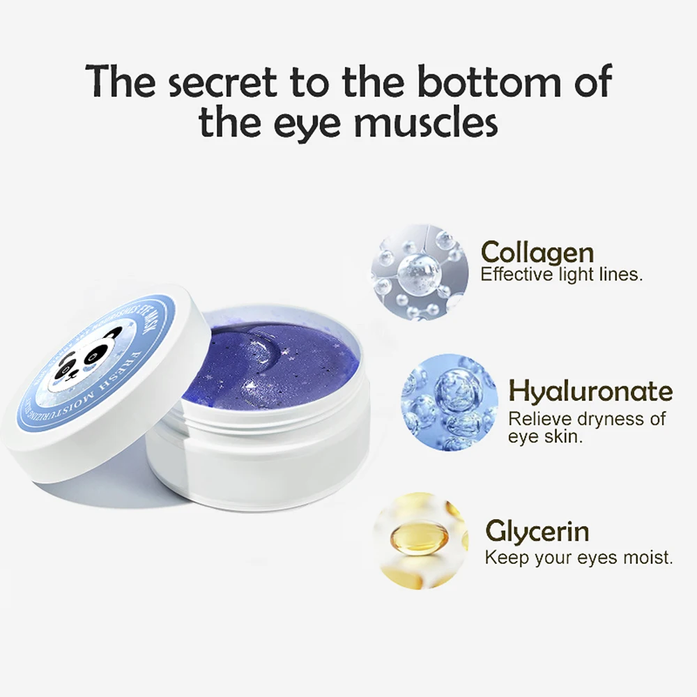 Патчи под глаза, синие, Антивозрастные, с гиалуроновой кислотой, 60 шт., для удаления темных кругов, мешков под глазами, уход за кожей