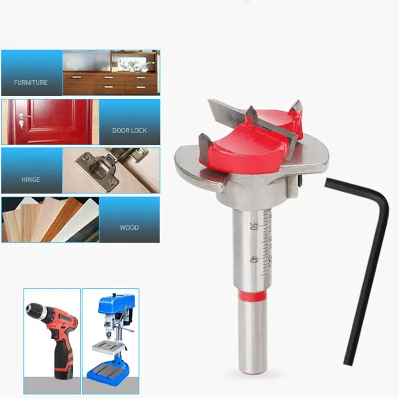 Использование: используется для перфорации деревообрабатывающих изделий, установки сферических дверных замков, замков ящиков, жестких пластмассовых изделий и т. д. он специально используется для открытия и установки петель деревянных досок.