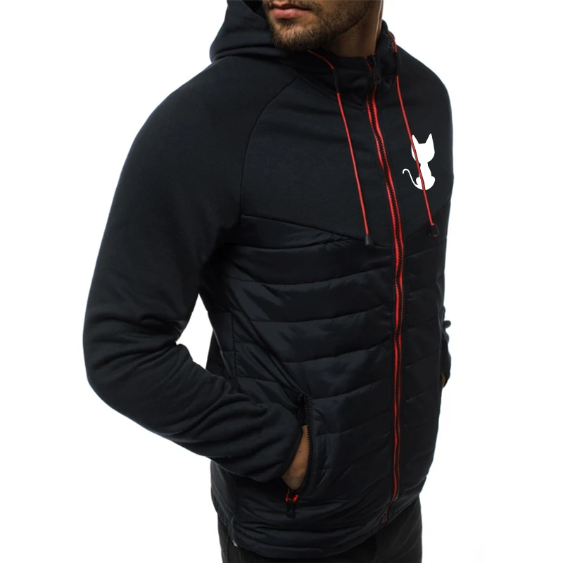 Модное мужское повседневное пальто, мужская куртка на молнии, Спортивная толстовка с капюшоном и принтом кошки, теплая одежда для мужчин на осень и зиму