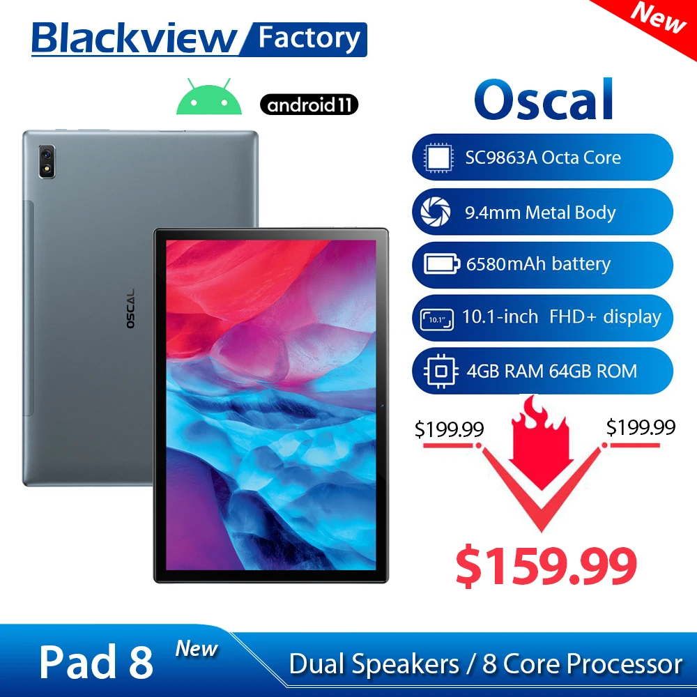 BLACKVIEW планшет с 10,1-дюймовым дисплеем, восьмиядерным процессором SC9863A, ОЗУ 4 Гб, ПЗУ 64 ГБ, 10,1 мАч, Android 11
