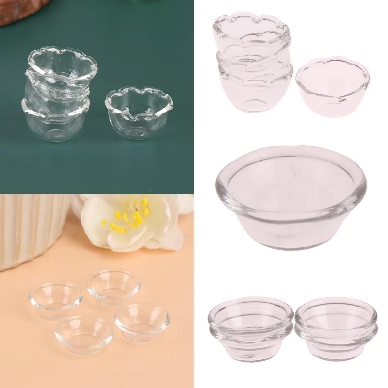 4 шт., миниатюрные стеклянные тарелки для фруктов и салата, в масштабе 1:12