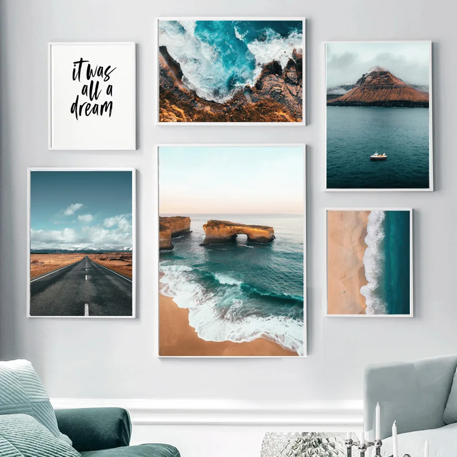 Дубай Пляж океан горная дорога пейзаж костюм настенная живопись холст постеры и принты гостиная скандинавский стиль украшения