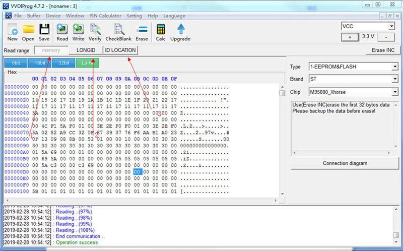 Шаг 1. Чтение и резервное копирование данных из 3 областей (память, LONGID, idloкация) с оригинальной приборной панели IC