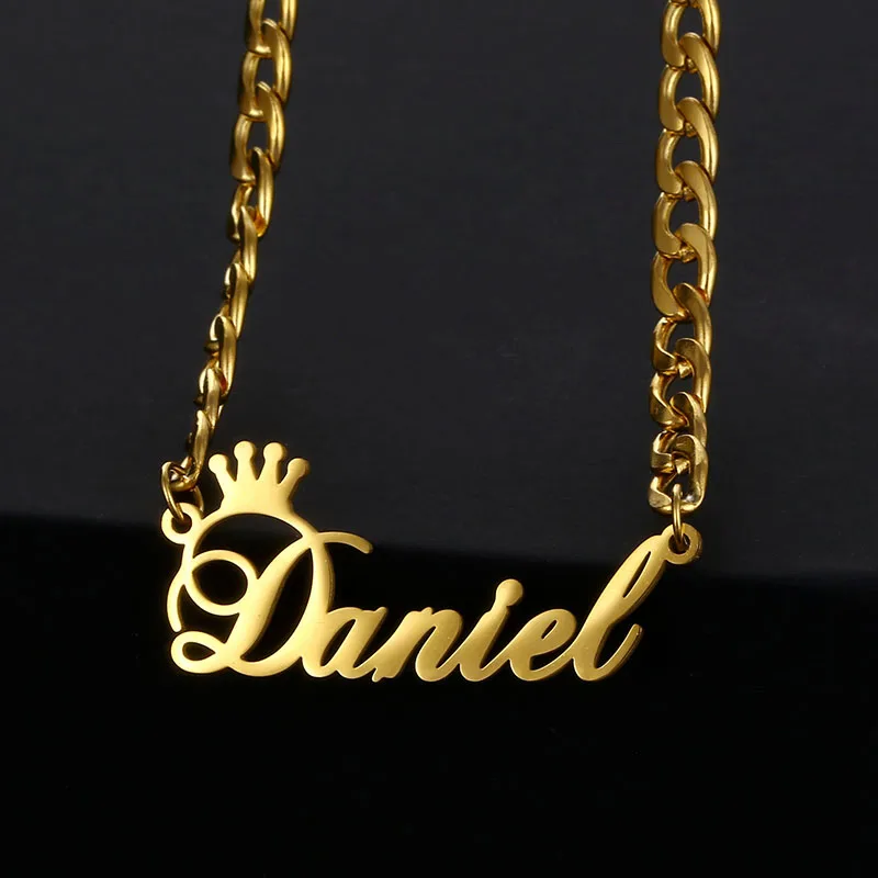 Золотое ожерелье с кубинским именем из нержавеющей стали на заказ, ювелирные изделия, персонализированные ожерелья с буквами и короной для женщин и мужчин