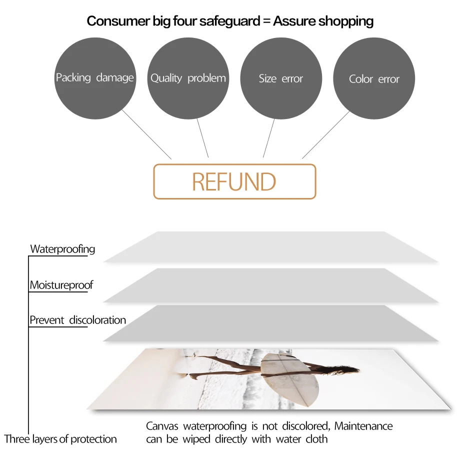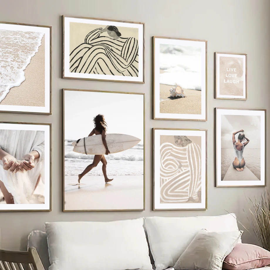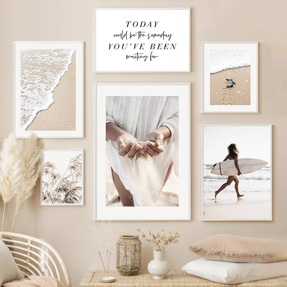 Тропический пляж серфинг девушка тростник настенное искусство холст живопись абстрактные скандинавские плакаты и принты настенные картины для гостиной Декор