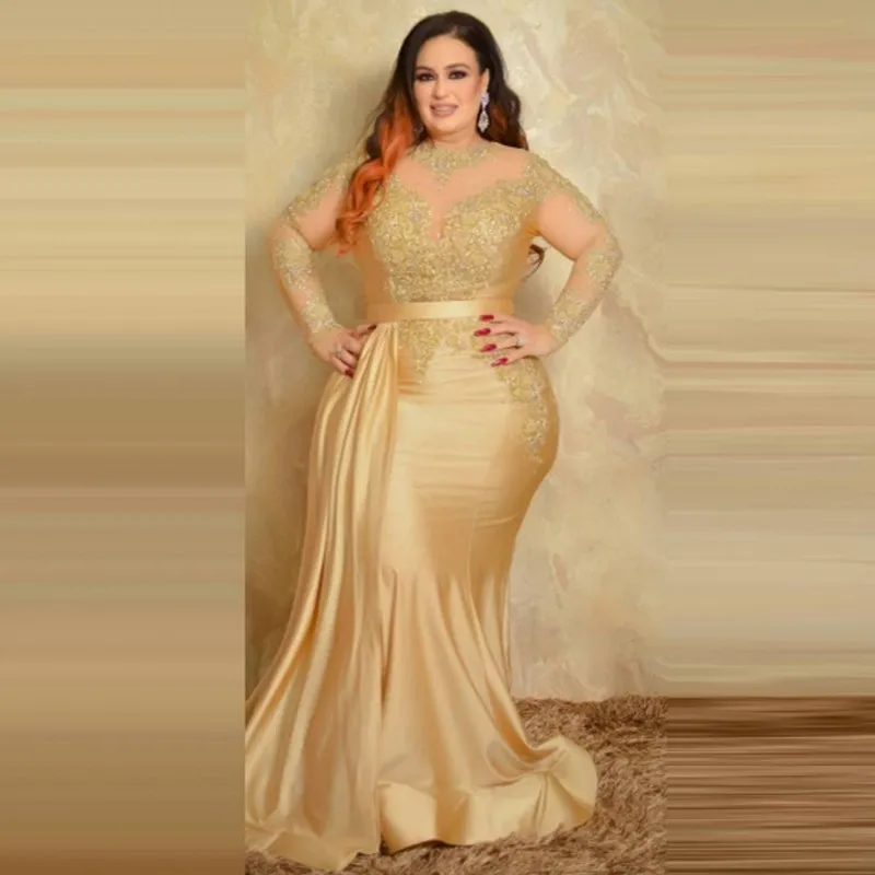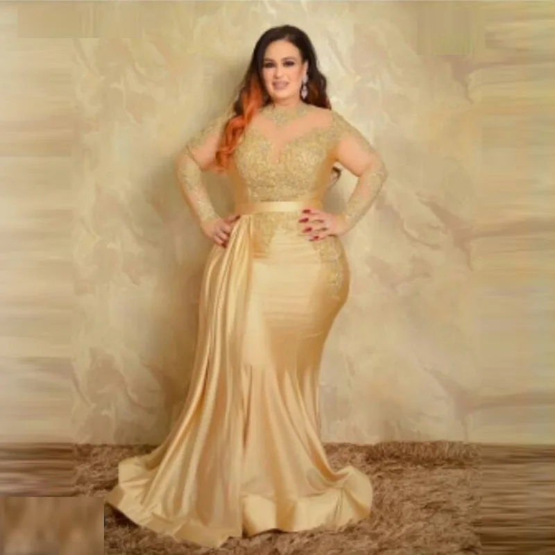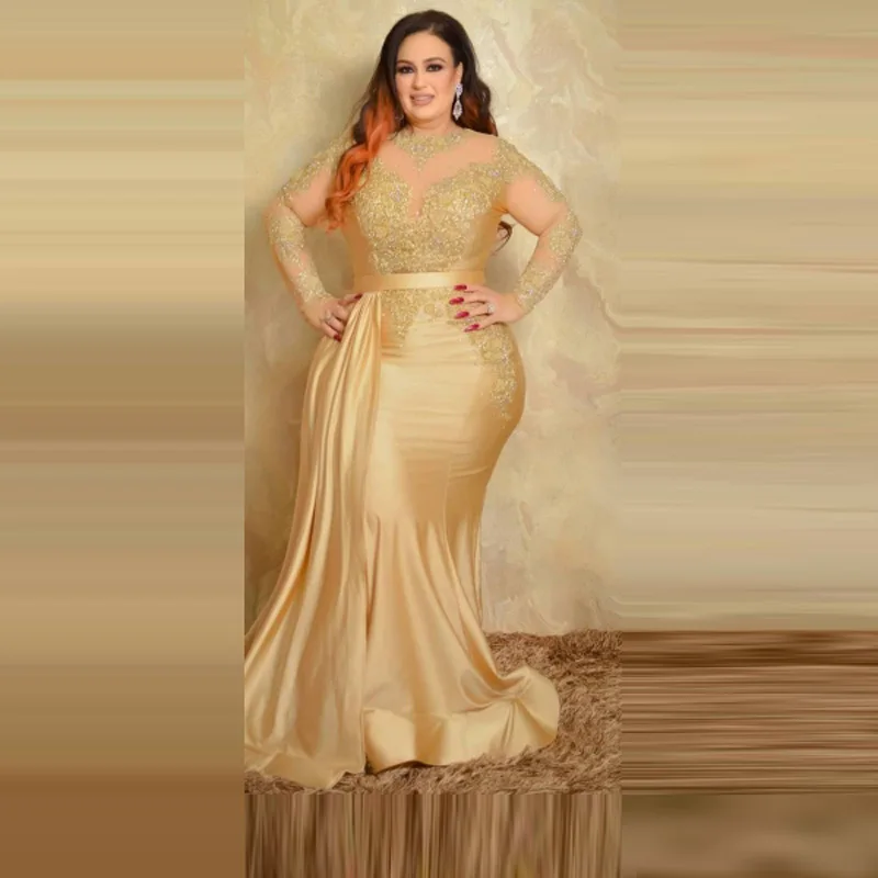 Кружевное Вечернее Платье-русалка, с длинными рукавами и шлейфом сбоку, в африканском стиле, размера плюс