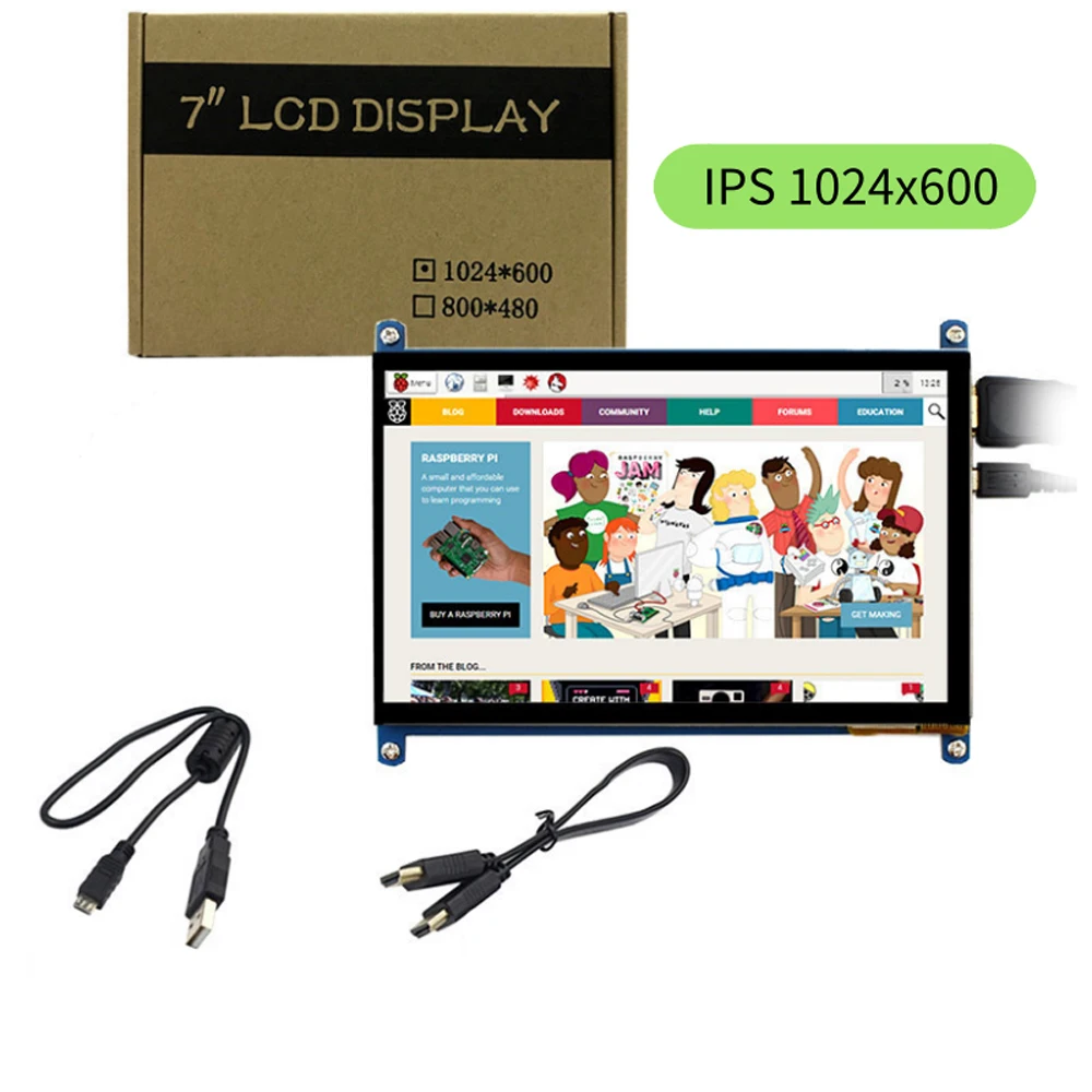 7-дюймовый сенсорный экран, панель монитора hdmi raspberry, ЖК-дисплей сделай сам, емкостный сенсорный дисплей HDMI 1024x60 0, портативный HD-дисплей