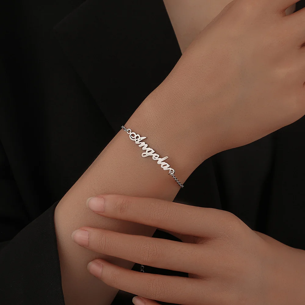 Новинка, женский браслет с поп-именем на заказ из нержавеющей стали, персонализированный Золотой именной знак, браслет с подвесками, ювелирные изделия, Женская драгоценность