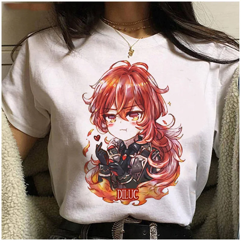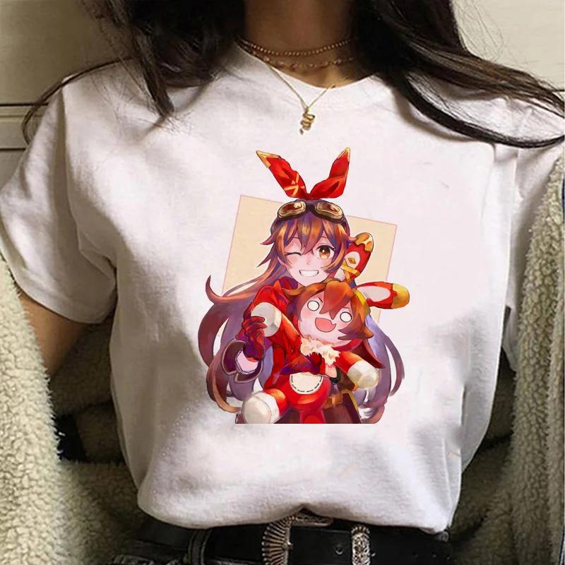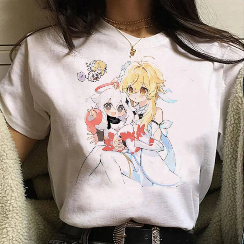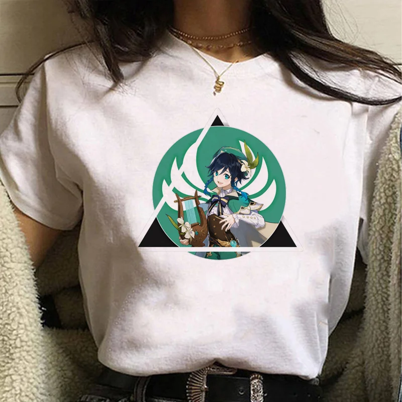 Женская футболка Genshin Impact, с графическим принтом, с коротким рукавом, в стиле аниме Харадзюку, летняя, 2021