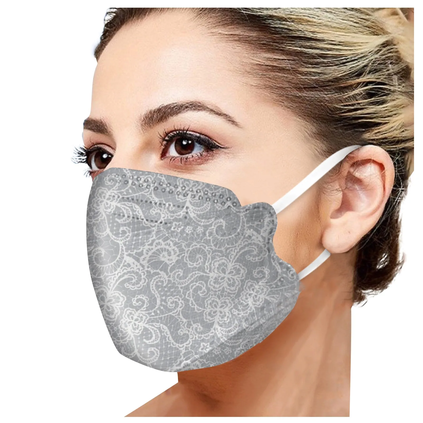 Маски для взрослых с градиентным принтом, 10 шт., одноразовые Тканевые маски для лица с цветочным узором, 3 слоя ткани, тушь для ресниц, модные ювелирные изделия