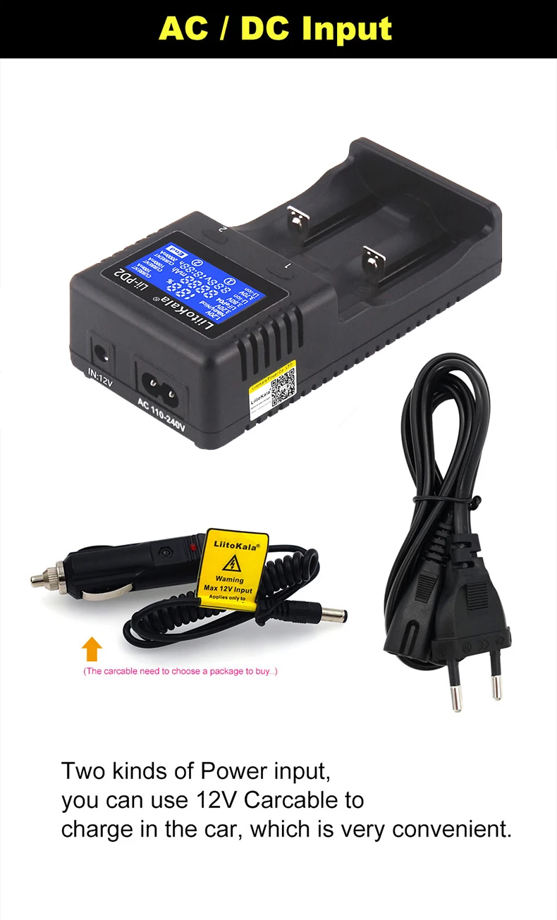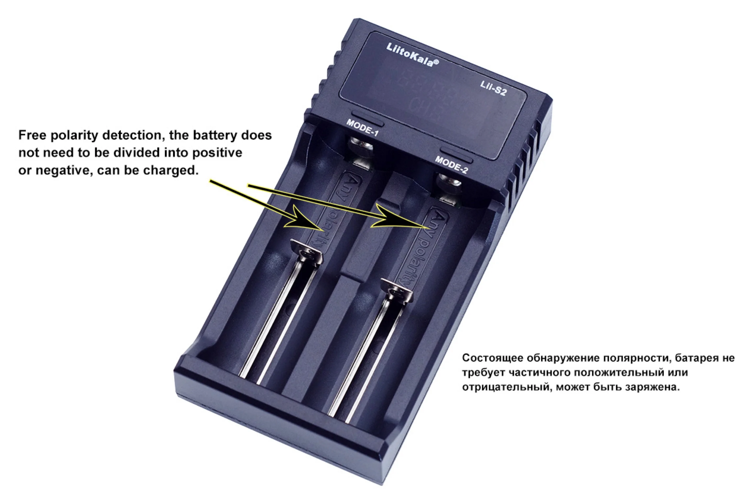 Это зарядное устройство может заряжать все цилиндрические аккумуляторы 3,7 V li-ion, 3,8 V IMR, 1,2 V Ni-MH/Cd, 3.2VLiFePO4Прочитайте это руководство перед использованием И обратите особое внимание на рекомендуемый ток заряда, не нужно заряжать аккумулятор за рекомендуемый предел токаЕсли вход постоянного тока, рекомендуется только 12 в 1 АНагрев во время зарядкиИзвлеките зарядное устройство из источника питания после завершения зарядки и одновременно извлеките аккумулятор из зарядного устройстваТолько для использования в помещенииОтображение данных только для справки, пожалуйста, обратитесь к профессиональному инструменту для получения более точных данныхХарактеристики и функции:1. Мульти-Потребляемая мощность: кабель переменного тока 110-240V 50/60Hz (все указанные аккумуляторы входят в комплект поставки)/ 12V 1A адаптер (выборочно), четыре независимых зарядных разъем) и микро компьютерная система управления.2. Зарядный ток, интеллигентая (ый) Авто-набор всего три уровня: 500mA/1000мА/2000mA),2000mA фиксируется только для слот #4.3. Многофункциональный светодиодный индикатор зарядки: для хода зарядки: 25% - 50% - 75% -100%, типы батарей: ni-mh 1,2 V, Li-Fe 3,2 V, Li-ion 3,7 V, литий-ионный 3,80 в (IMR) и для зарядки тока: 0.5A/1A/2A4. Автоматическое определение литий-ионных и никель-гидридных аккумуляторов и Ручная настройка режима зарядки для литий-ионных батарей LiFePO4 и 3,80 в (IMR)5. Обновите для OV батареи. Он не будет заряжать аккумулятор 1,65-2,20 в (обновленный ток может быть обнаружен только)6. Многофункциональная функция защиты от перезарядки и переразряда, короткого замыкания, полярности и т. д. Он может точно определить сломанные батареи с гораздо большей безопасностью.7. Зарядка при постоянном напряжении и токеСовместимые типы и размеры батарейLi-ion / IMR/LiFePO4: 26650,21700,20700, 18650, 18490, 18350, 17670, 17500, 16340(RCR123), 14500, 10440NiMH/Cd: AA, AAA,SC, C