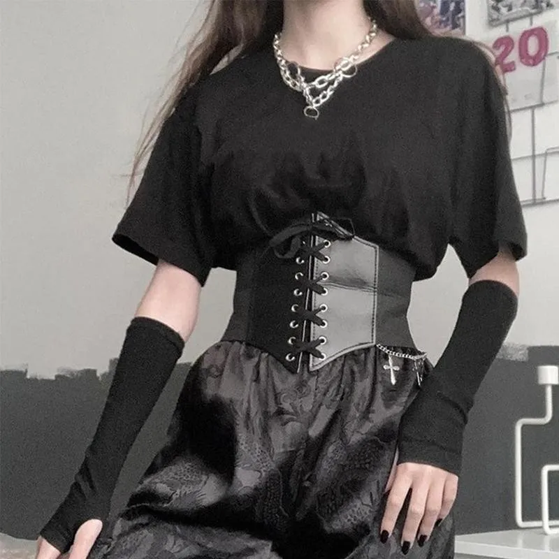 Новый Готический Темный укороченный топ на шнуровке, Женский корсет с ремнем, женский топ с ремнем, бюстье, топы для ношения