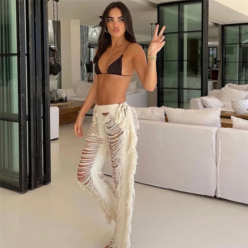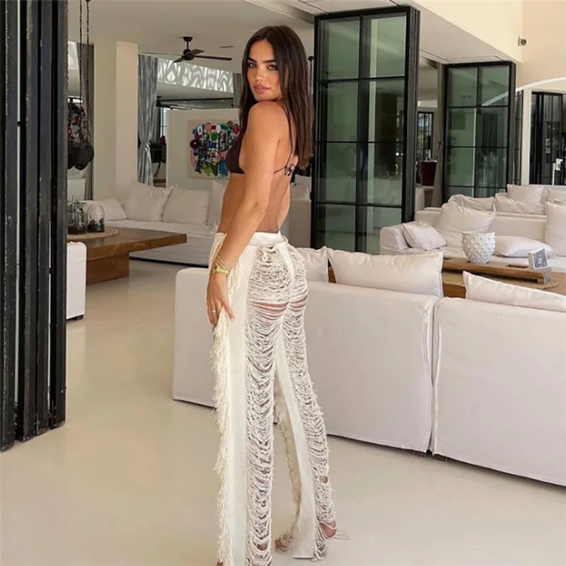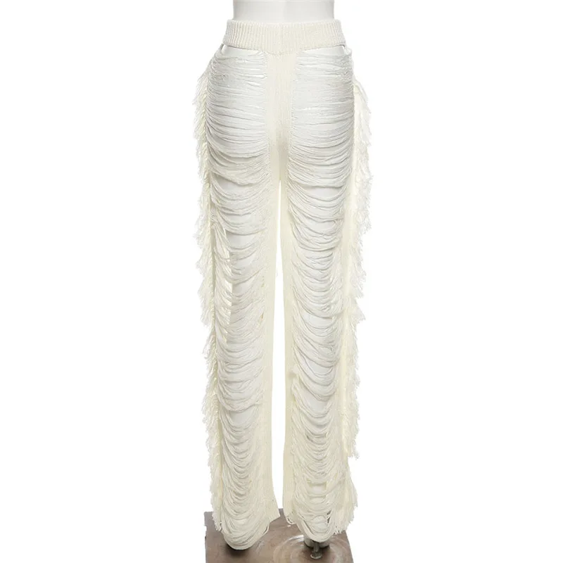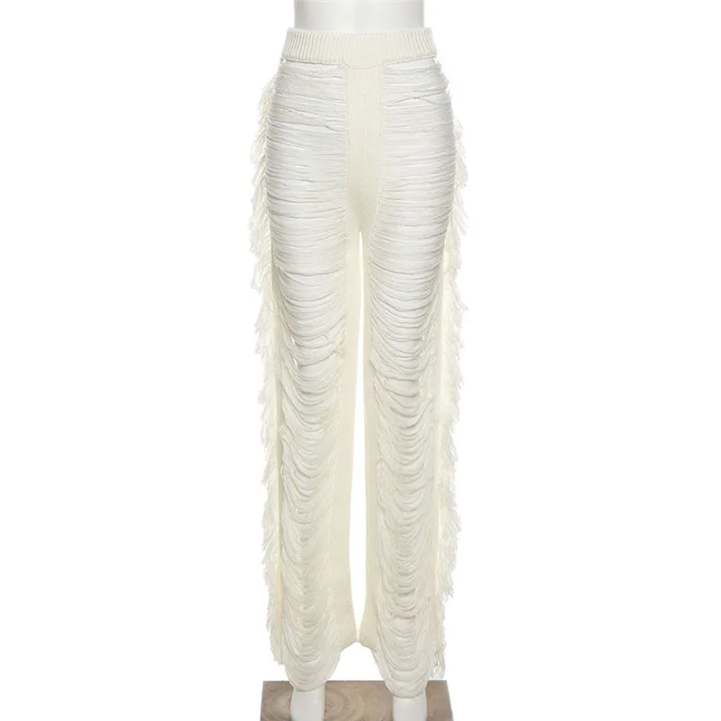 TrendAesthetic High Waist Knitted Hollow Out Tassel Pants