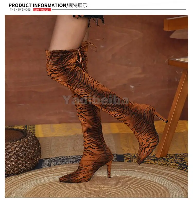 Женские сапоги выше колена, эластичная ткань, заостренный носок, вы...