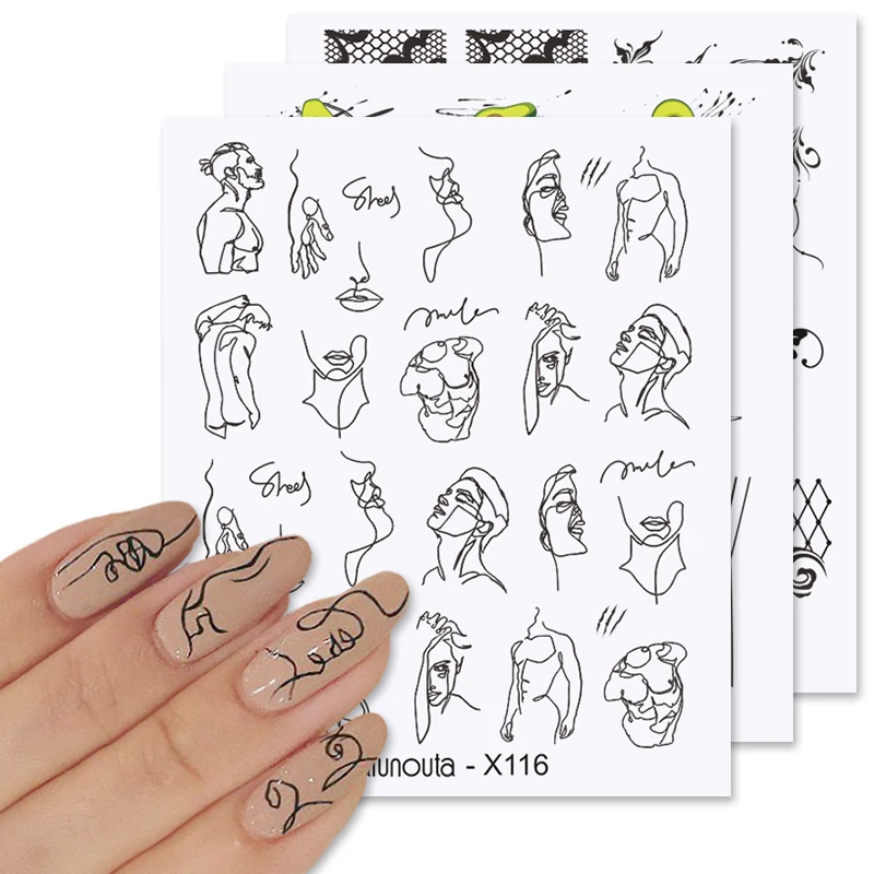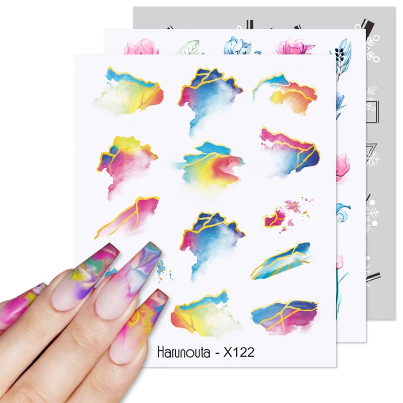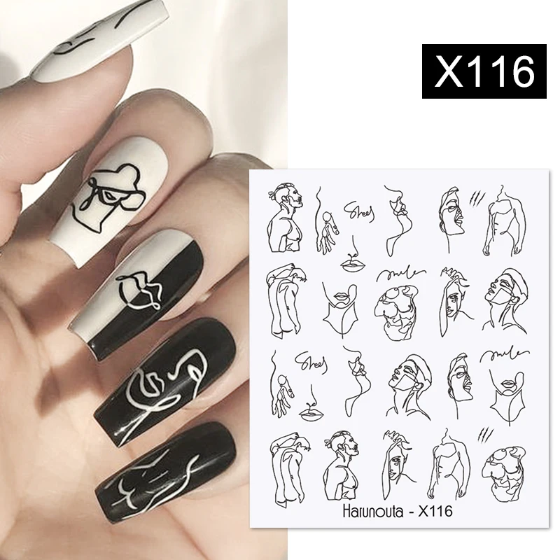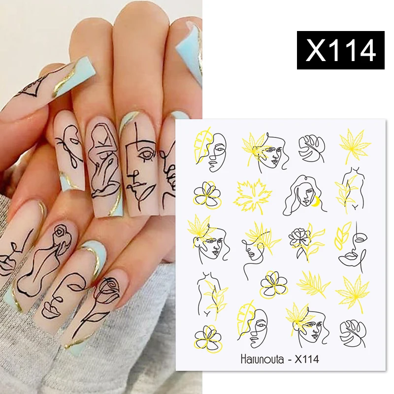 Harunouta золотые черные линии полые листья Водные Наклейки Цветок геометрические Слайдеры для ногтей осенние украшения для ногтей