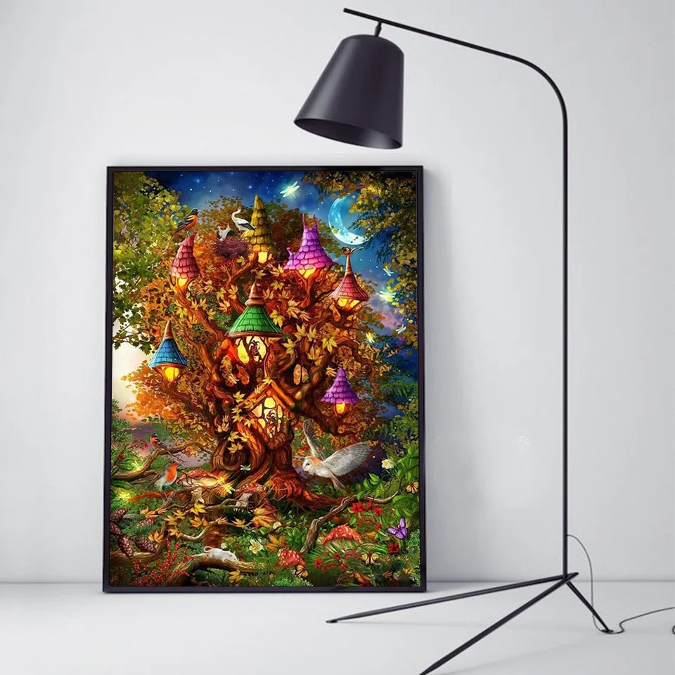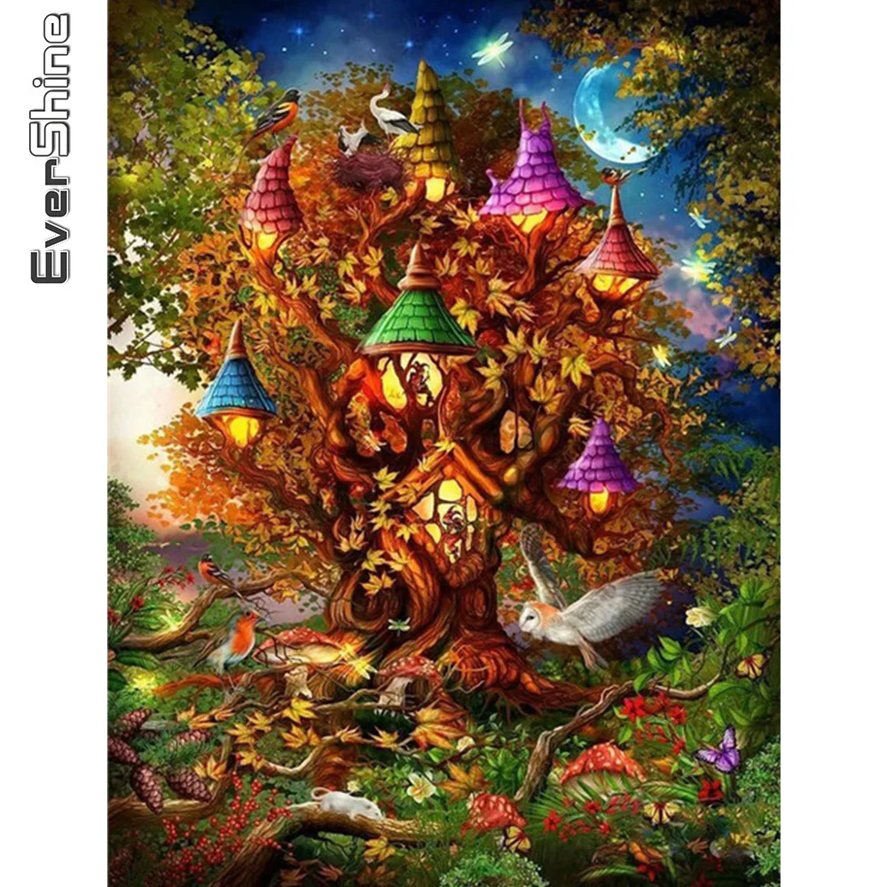 Evershine алмазная живопись дом 5D DIY Алмазная мозаика дерево Пейзаж Вышивка крестиком Сова Стразы картина подарок на Хэллоуин