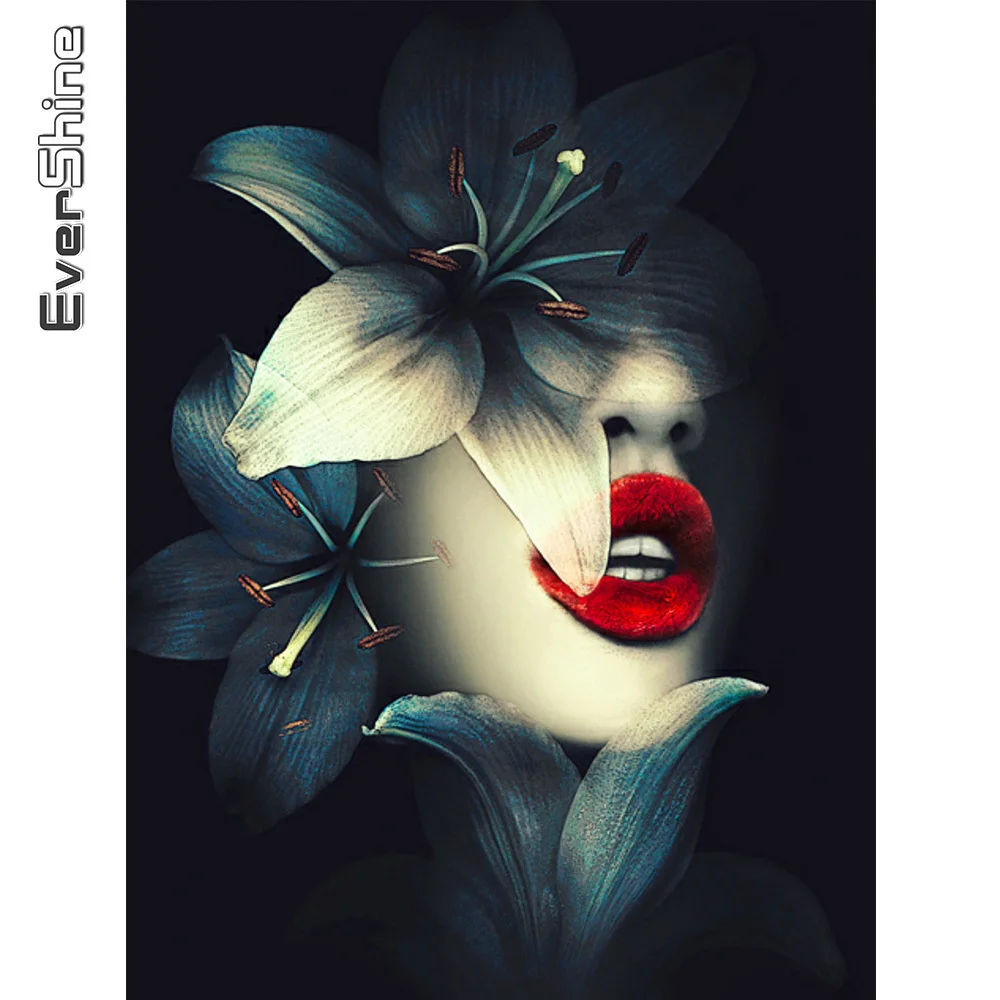 Тип:5D DIY Алмазная картина женщины и цветок Стразы картинки