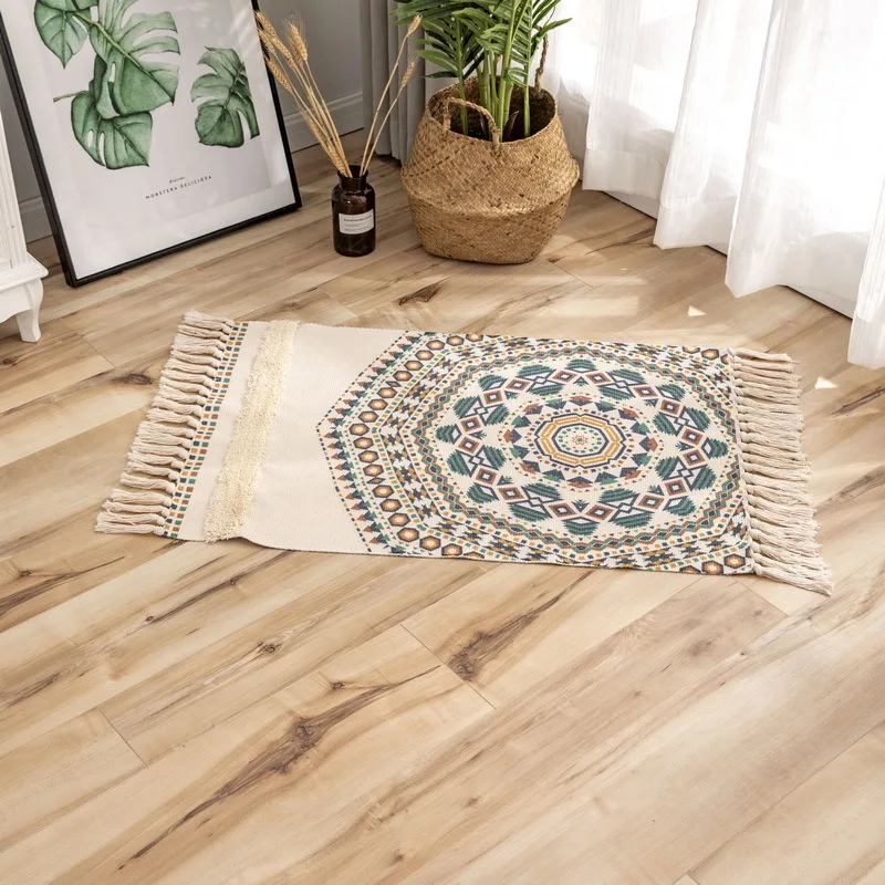 Ретро богемный ручной тканый хлопковый льняной ковер с марокканским принтом, коврики с кисточками, коврик для ванной