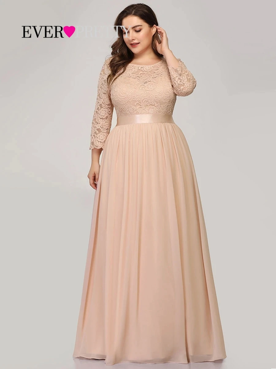 Женское длинное вечернее платье Ever Pretty, шифоновое розовое платье с длинным рукавом, трапециевидного силуэта, с кружевом, для гостей свадьбы, EP07412, зима 2019