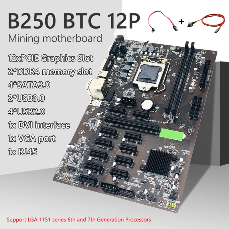 Материнская плата B250 BTC 12P для майнинга LGA 1151 DDR4 с кабелем...