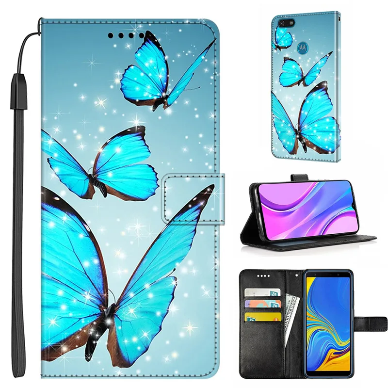 Кожаный чехол для Motorola Moto E7 Plus, мощный Чехол-книжка с рисунком, кошелек с подставкой для карт для Moto E6 Play E6s 2020, роскошная симпатичная сумка