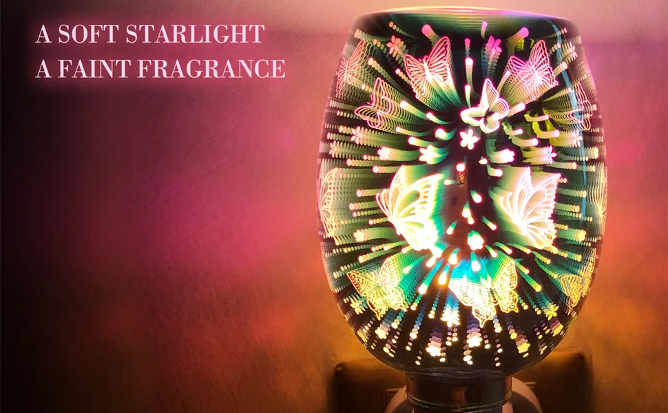 ✨Эффект 3D бабочки: электрическийВосковые плавления горелки изготовлены из высококачественного и оргеозного 3D цветного стекла, он можетСоздает отличный светильник, который выглядит красиво и изысканно.