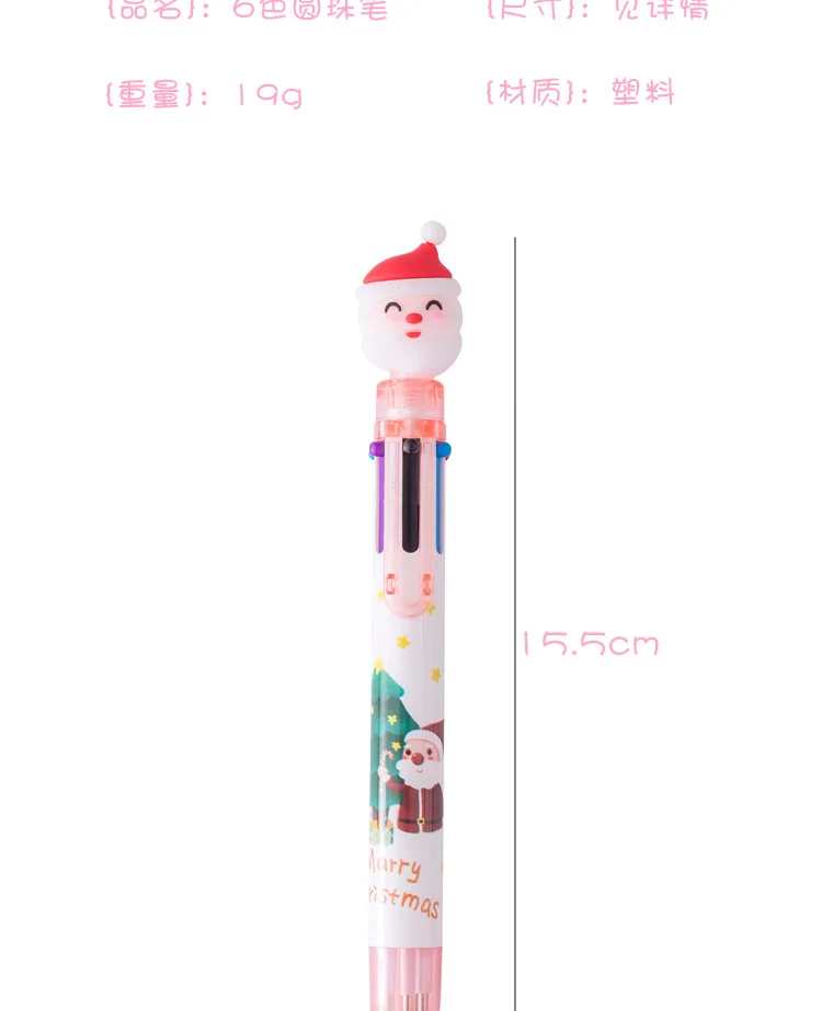 Симпатичная Шариковая ручка шести цветов с Санта-Клаусом, рождественским рисунком, рождественским оленем, шариковая ручка для начальной школы, подарки, канцелярские принадлежности, Рождественский Декор