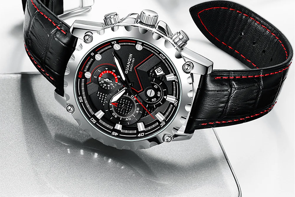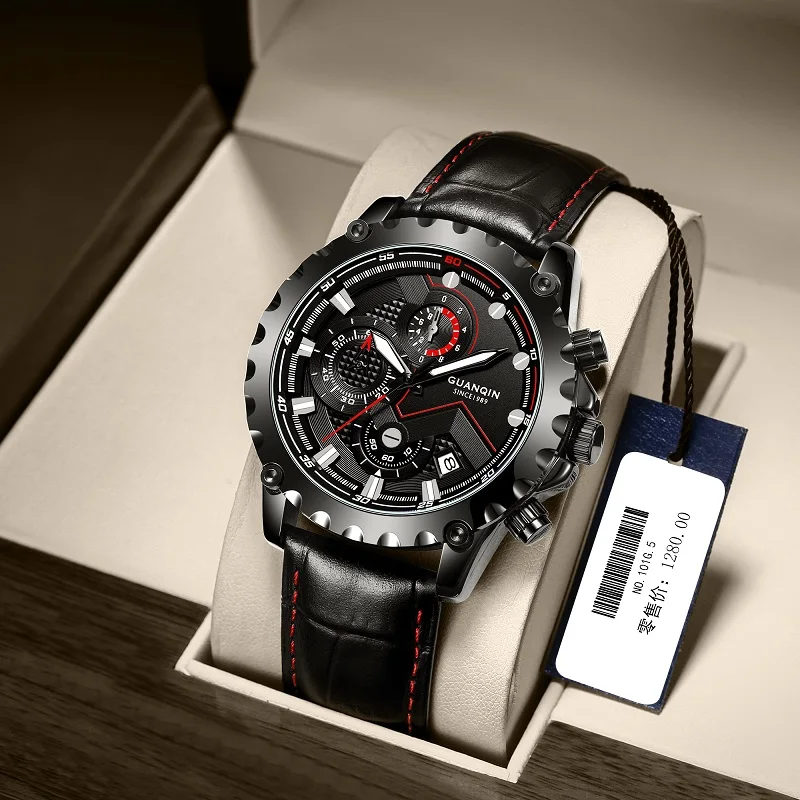 Часы GUANQIN мужские с хронографом, светящиеся водонепроницаемые бр...